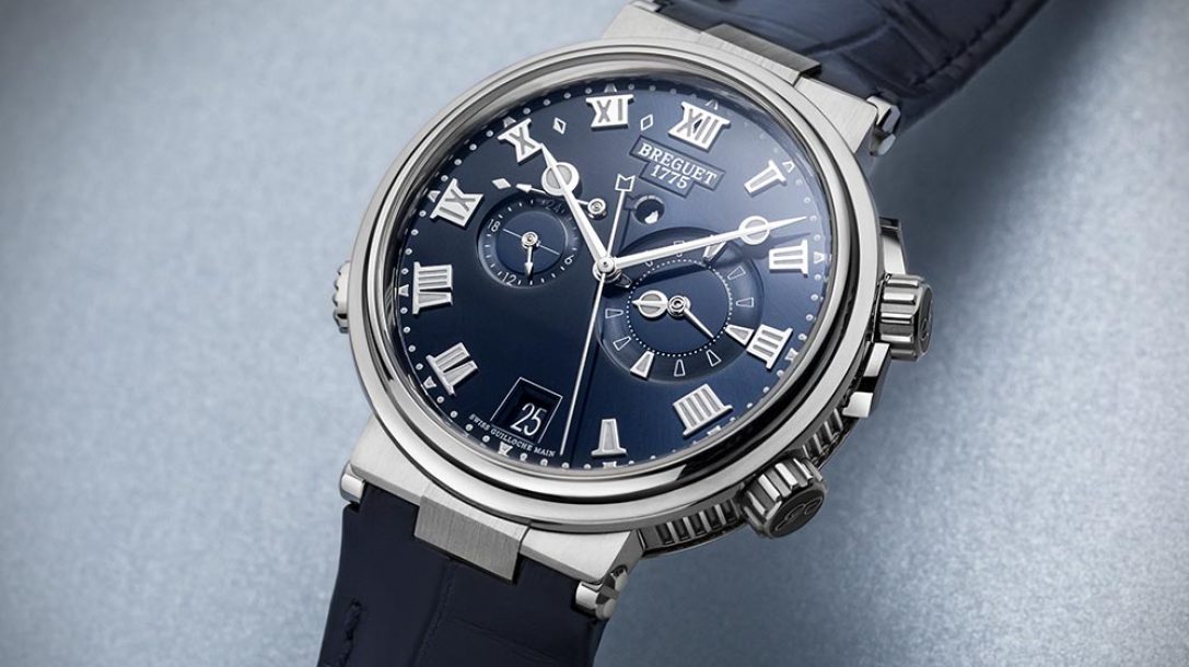 新穎的Marine腕表包括一款藍色運動腕表,以旅行為設計理念,擁有第二時區,并配有機械鬧鐘。