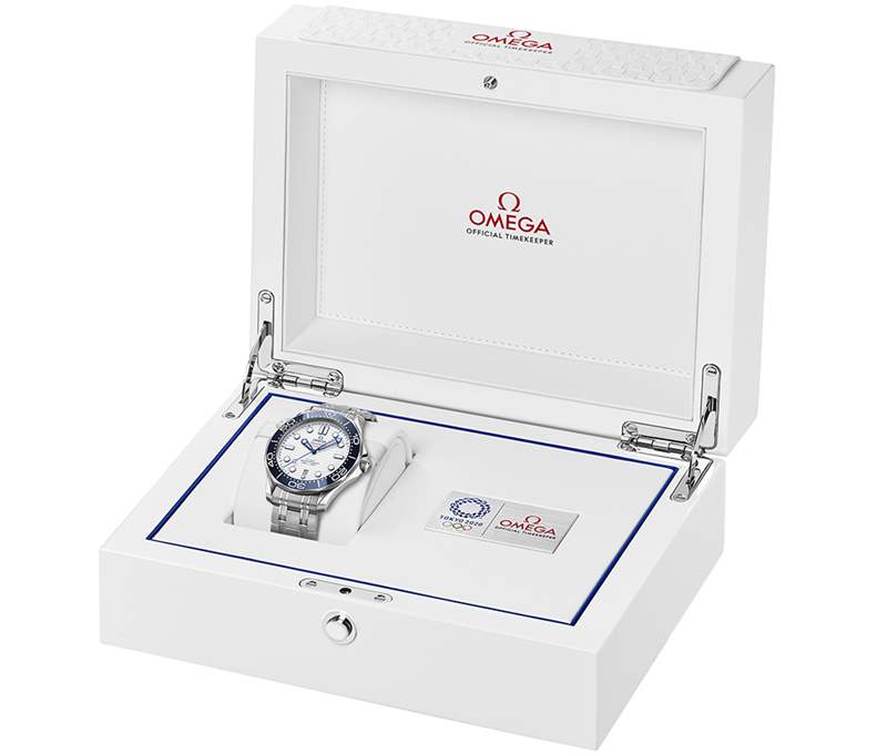 海馬系列潛水員300米東京2020腕表搭配5排鏈節的精鋼表鏈,搭配折疊式表扣。