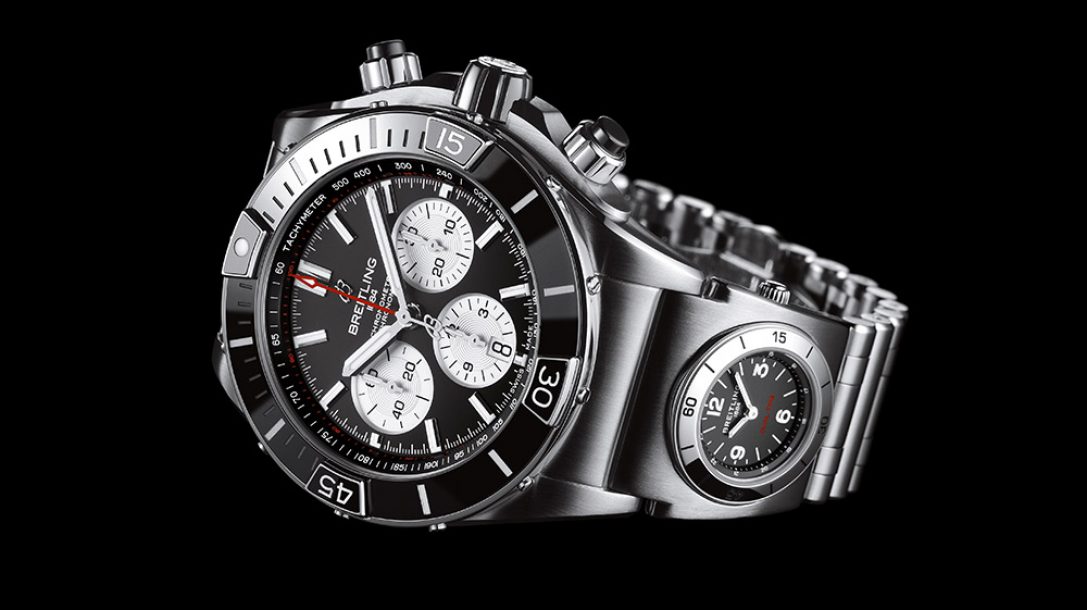 第二時區模塊嵌入“Rouleaux”精鋼表鏈中,搭配折疊式表扣,搭載61型石英機芯。其電池壽命為60個月的電池設置在26.1 mm的膠囊內。整個超級計時腕表 B01 44 UTC 防水深度達 200 米。