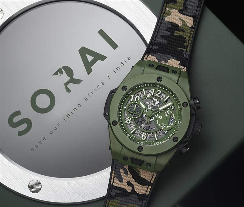 宇舶表第二次表示支持“拯救我們的犀牛非洲印度”協會,該協會誕生于由前才華橫溢的板球運動員凱文·彼得森(Kevin Pietersen)領導的一項保護南非犀牛的倡議。在短短10年內,他們的人口減少了三分之二。因此,為了解決偷獵者的有害行為,該制造商承諾遵循與2019年公布的模型相同的原則,將銷售100件Big Bang Unico Sorai?2021作品的部分收益捐贈給世界上最大的犀牛保護區Care for Wild。這款手表摒棄了先前版本的沙色色調,并穿上了迷彩裝備。直徑45毫米的表殼和表圈采用拋光綠色陶瓷制成。鏤空表盤中心彰顯了該系列的經典布局。60分鐘累加器設置在3點鐘位置,中央直驅邀請佩戴者讀取經過的時間。9點鐘位置的小秒針點綴著綠漆貼花,飾有哺乳動物的輪廓,需要保護。