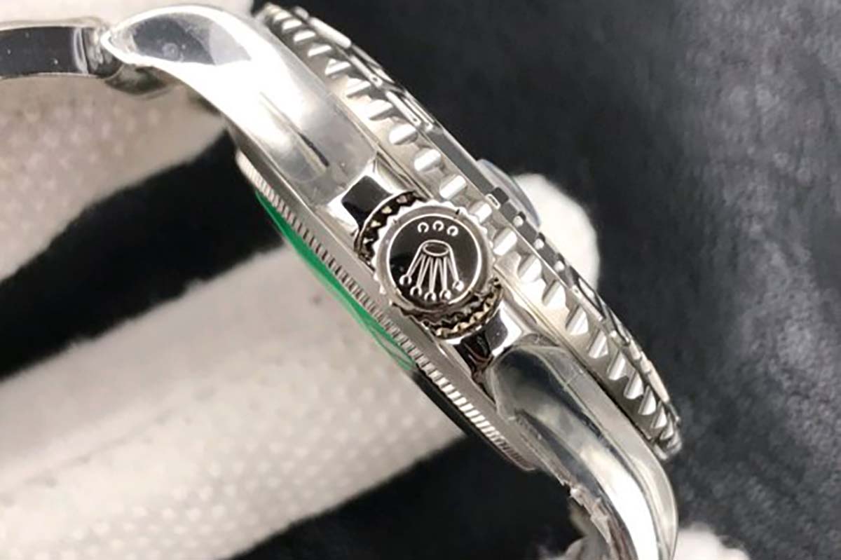 AR廠勞力士灰游艇名仕系列灰盤藍針復刻腕表側面把頭拋光精密,5個小圓點圓潤細膩。這個鍍藍膜也是能夠撕掉的。把頭選用潛水腕表的旋入式結構的設計還原還是非常不錯的!