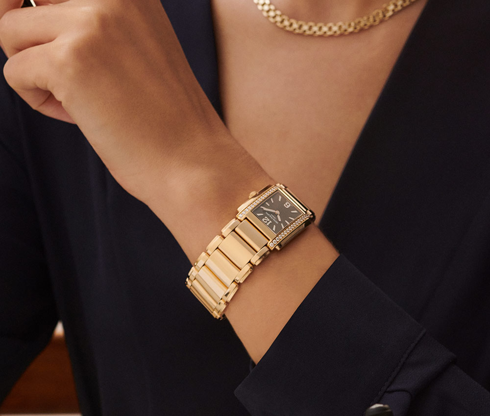 Twenty-4系列于1999年推出時,它僅由矩形模型組成,其設計靈感來自袖口手表。百達翡麗今年突破時展示的新車型之一是4910/1201R-001,它延續了這一風格選擇。這款腕表專為打造最優雅的手腕而設計,將雙橢圓形表殼與兩排垂直排列的17顆鉆石和一條玫瑰金表鏈與巧克力棕色表盤相結合。與其前身一樣,一對Super-LumiNova?涂層的白金“圓形指揮棒”型指針由E15石英機芯驅動。