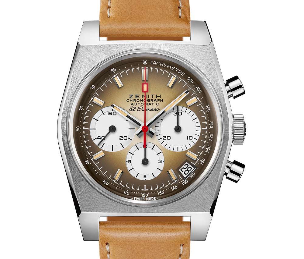 在花卉設(shè)計(jì)和迷幻色彩在20世紀(jì)70年代爆炸之前,更符合自然的色調(diào)在上個(gè)十年末左右在社會(huì)中占據(jù)了至高無上的地位。綠色,棕色和黃色將在每件作品中占據(jù)突出地位,運(yùn)動(dòng)和優(yōu)雅。真力時(shí)將我們帶回這個(gè)鼓舞人心的時(shí)期,其Chronomaster Revival A385。這個(gè)版本,遠(yuǎn)不止是對1969年腕表的簡單重新詮釋,該腕表擁有神話般的El Primero機(jī)芯,實(shí)際上以最細(xì)致的方式再現(xiàn)了原始表款的裝飾,除了藍(lán)寶石水晶表鏡。形狀和細(xì)節(jié),例如環(huán)繞分鐘跟蹤器的測速刻度,自豪地矗立在場面。除了在當(dāng)時(shí)推出的這款腕表的工程壯舉外,它還通過提出制表業(yè)中首款采用漸變效果裝飾的表盤而脫穎而出。而且,這正是我們在這里所擁有的。米色Super-LumiNova?腕表完美匹配腕表的棕色細(xì)微差別,涵蓋時(shí)針和分針以及時(shí)標(biāo)。