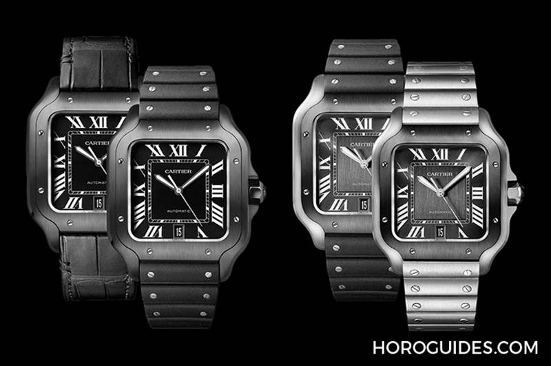 從我們看到的第一款,是從藍面不銹鋼、到新的鍍黑配上膠帶,跟比較特別的黑圈巖石面,風(fēng)格比較強烈的2020全新款式,到鏤空以及不銹鋼到K金,非常不同的價位帶。這三款你會發(fā)現(xiàn)到,當(dāng)你戴著它的時候,這是我戴Santos的感覺,我平常很多時候是簡單的打扮,白T白色運動鞋,非常干凈,那個時候你戴一只Santos、K金鏤空,它都非常適合,強烈表達它運動表的功能。