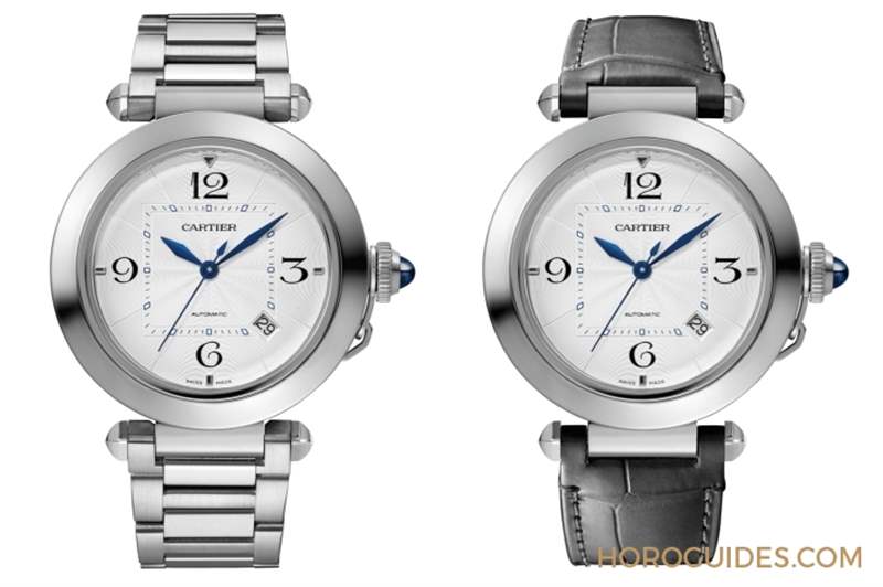 Pasha de Cartier腕表于7月1日在中國上市,9月4日全球發行。共推出35mm和41mm兩種尺寸,表冠鑲嵌一顆凸圓形藍色合成尖晶石。搭配皮表帶或精鋼表鏈,配置「QuickSwitch」互換式系統,鏈節采用SmartLink可調校式系統,可自行調整長度。同步推出精鋼、K金、「舞動」鑲嵌鉆石和鏤空機芯等豐富款式。