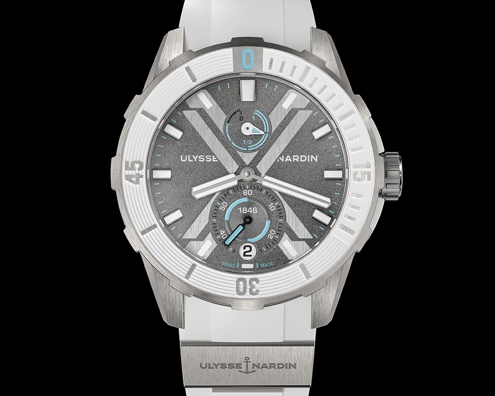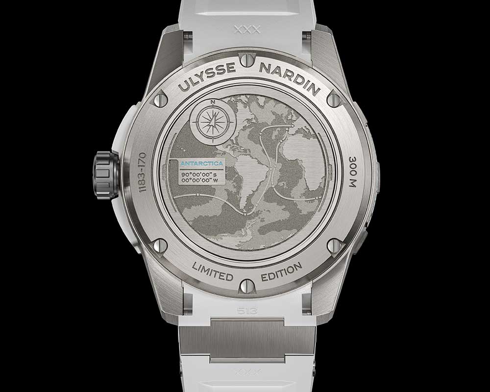 南極洲是許多探險家最喜歡的游樂場,仍然有許多秘密需要揭開。170 多年來,Ulysse Nardin?一直陪伴著探險家們,橫跨世界各大洋,帶著腕表指南針,帶著?Diver X Antarctica?駛向這個完美無暇的領域。這款時計的設計呼應了該制表廠潛水腕表的風格規范,其裝飾品讓人聯想到南極冰冷的場景。在噴砂灰色表盤上,時標由兩只時針和分針懸停。所有這些元素都覆蓋著白色發光材料。12點鐘位置設有動力儲存顯示,小秒針和日期視窗位于6點鐘位置,對稱排列。兩者都襯托出一抹冰藍色,單向旋轉表圈上刻有0的刻度也是如此。順便說一句,表背上印有最南端的南極點——位于南緯90°,沒有任何經度。我們還發現了當前的旺代環球帆船賽,雅典表是該賽事的官方贊助商。