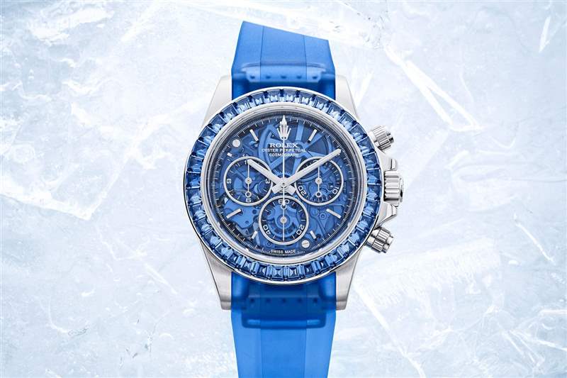 對于那些不熟悉 Artisans de Genève 作品的人來說,他們是瑞士最著名的奢侈手表定制商之一,根據(jù)主人的口味改裝高端手表。他們最常要求的定制之一是勞力士代托納(令純粹主義者懊惱不已),去年他們在“藍色陰影”和馬焦雷湖 版本中進行了定制。他們再次回到 Daytona 進行他們的最新項目,藍寶石包覆的“Arolla”。