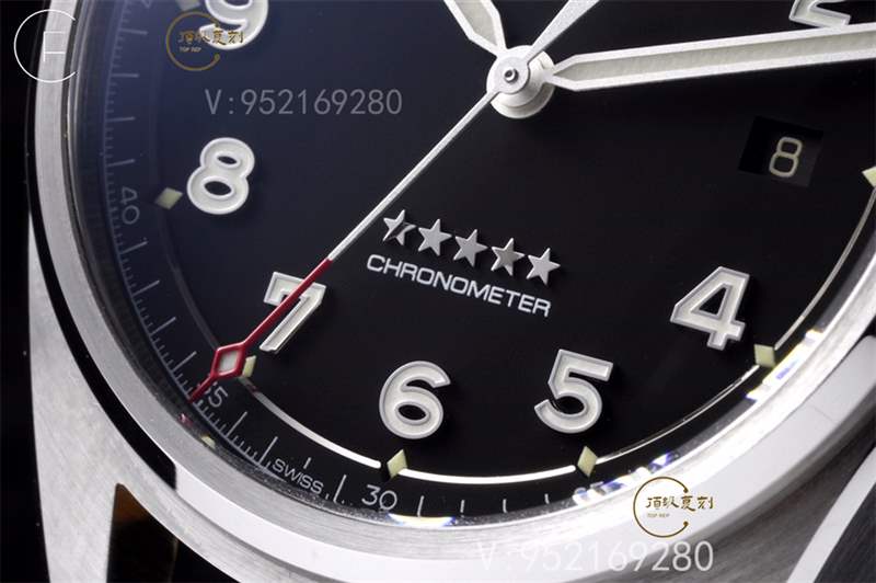 【盤面】白盤采用正品相同的顆粒紋理字面,藍盤采用與正品相同的放射紋路字面,黑盤采用與原裝一致的磨砂細微顆粒字面,顆粒的整體密度與正品吻合,在任何角度下均可以看出與正品相同的光源反射。每個數字字釘、logo、五角星、采用正品工藝材質獨立開模,歷經幾套模具終使立體美感與原版一致。